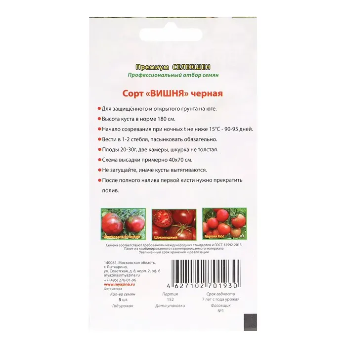 Раннеспелый (112 дней от всходов до плодоношения) высокорослый сорт для выращивания в пленочных теплицах. Растение индетерминантное (с неограниченным ростом), высотой более 2 м. Плоды округлые, бурого цвета, массой 18 г, с десертным вкусом. Для приготовления ярких свежих салатов, аппетитных закусок и разноцветных консервированных ассорти. Урожайность 3,5 кг/м2. Посев на рассаду - в конце марта - начале апреля. Пикировка - в фазе первого настоящего листа. Высадка рассады - в начале середине мая (если апрель теплый, то высадка рассады возможна в конце апреля). Формируют в один стебель, удаляя все «пасынки». При образовании 5-го соцветия начинают удалять нижние листья по 2-3 в неделю. После образования 8-10 кистей побег прищипывают, оставляя 2 листа над последней кистью.