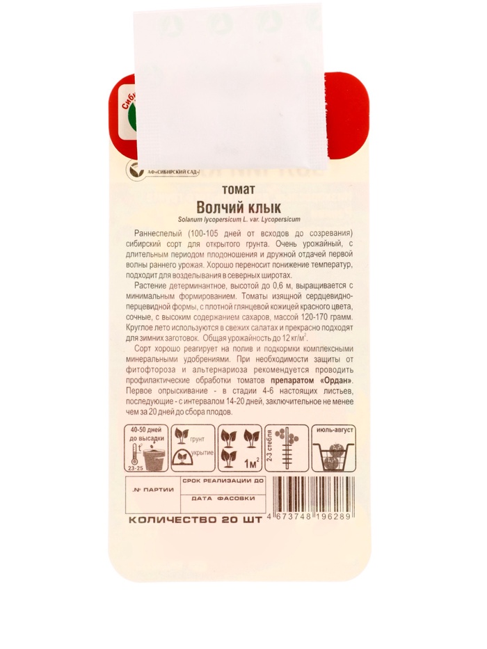 Семена Томат «Волчий клык», 20 шт., «Сибирский сад» — Характеристики