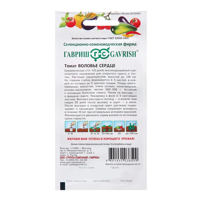 Семена Томат "Воловье сердце", 0,05 г — Характеристики