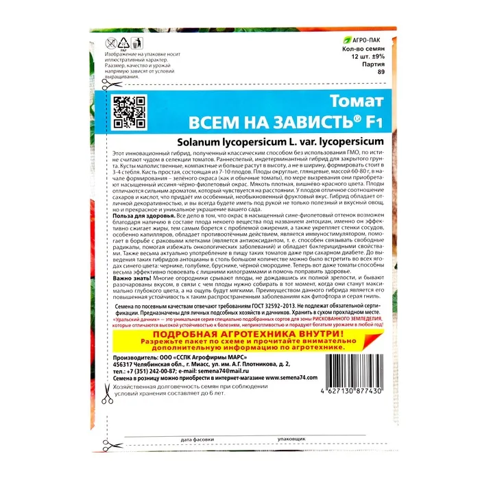 Семена томата "Всем на зависть" F1 - это высококачественный гибрид томатов, который отличается отличным вкусом, высокой урожайностью и устойчивостью к болезням. Каждый пакет содержит 12 штук семян, которые гарантированно приведут к выращиванию здоровых и сильных растений.Этот сорт томатов идеально подходит для выращивания как в теплицах, так и на открытом грунте. "Всем на зависть" F1 является одним из самых популярных сортов томатов среди огородников и садоводов благодаря своей урожайности и отличному вкусу.Томаты "Всем на зависть" F1 имеют плотную мякоть и сладковатый вкус, а их форма и размер делают их идеальными для использования в кулинарии. Этот сорт томатов обладает высокой устойчивостью к болезням, что позволяет получать стабильный урожай даже при неблагоприятных условиях.