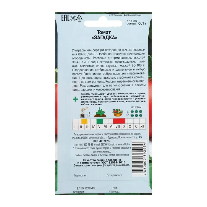 Ультраранний сорт (от всходов до начала созревания 80-85 дней). Особенно нравится начинающим огородникам. Растение детерминантное, высотой 30-40 см. Плоды округлые, ярко-красные, плотные, мясистые, очень вкусные, массой 80-100 г. Плодоношение стабильное и длительное в любую погоду. Растение не требует подвязки и пасынкования.