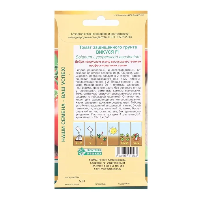 Семена Томат защищенного гунта Викуся F1, 5 шт — Характеристики