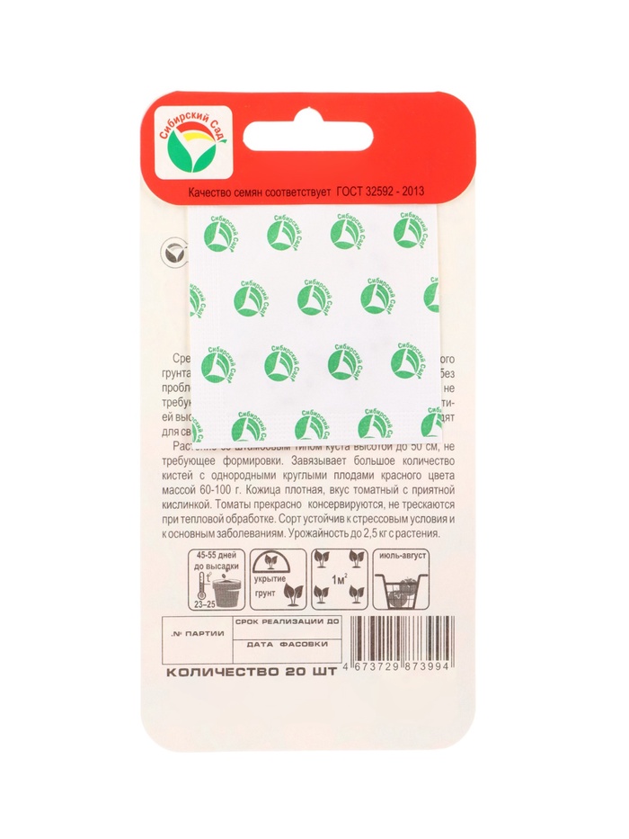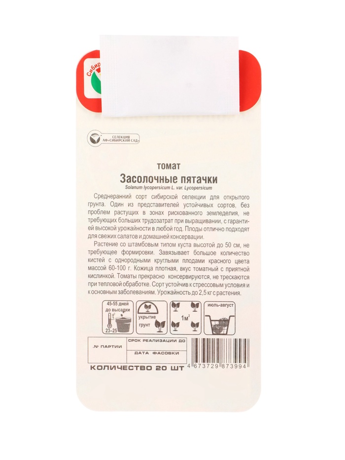 Семена Томат «Засолочные пятачки», 20 шт., «Сибирский сад» — Характеристики