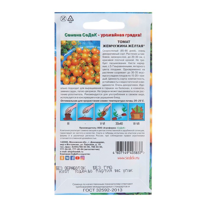 Семена томат «Жемчужина Желтая F1», 0.1 г — Характеристики