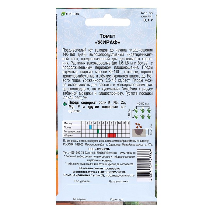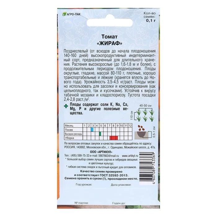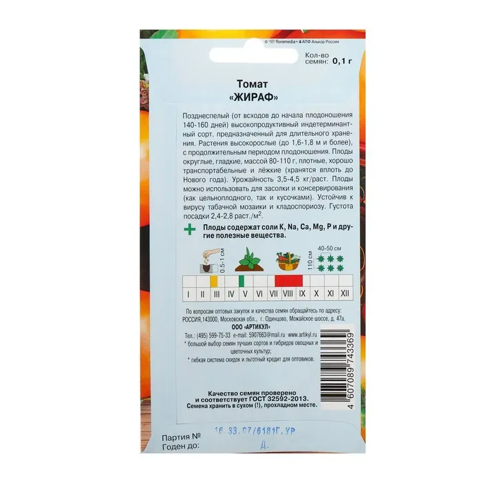 Семена Томат "Жираф" позднеспелый, 0,1 г. — Характеристики