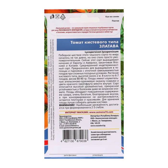 На рассаду семена высевают в начале марта на глубину 1-1,5 см. Пикировка — в фазе 1-2 настоящих листьев. Подкормка рассады 2-3 раза комплексным удобрением. Высадка рассады в возрасте 50-55 дней. Густота посадки — 3-4 растения на 1 м2. Необходимо подвязывать, удалять пасынки и формировать растения в один стебель. Последующий уход заключается в подкормках, поливах и рыхлении почвы.