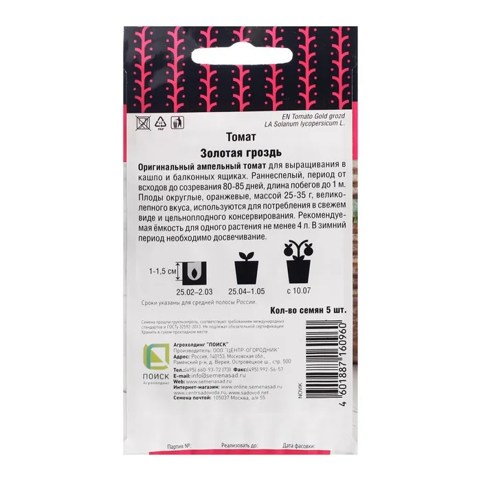 Урожайность: 1,5-2,0 кг/раст.
