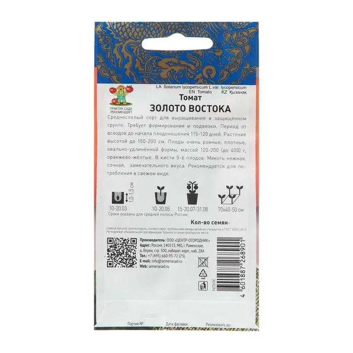 Семена Томат "Золото Востока", 10 шт. — Характеристики