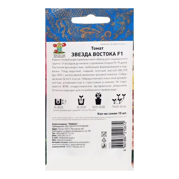 Отличный вкус мясистых плодов. Раннеспелый индетерминантный гибрид для защищенного грунта. От всходов до начала созревания плодов 90-95 дней. Растения высокорослые, требующие формирования и подвязки. Плод округлый, гладкий, плотный, массой 200-270 г, интенсивной малиново-розовой окраски. Собраны в кисти по 5-6 штук. Гибрид отличается высокой урожайностью, устойчивостью к стрессовым условиям. Не поражается ВТМ, кладоспориозом, фузариозным увяданием. Отлично подходит для потребления в свежем виде.