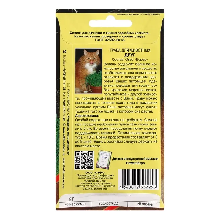 Свежая трава для котов, собак и других питомцев восполняет запас витаминов и минеральных веществ, улучшает процесс пищеварения и очищает желудок животного от шерсти.