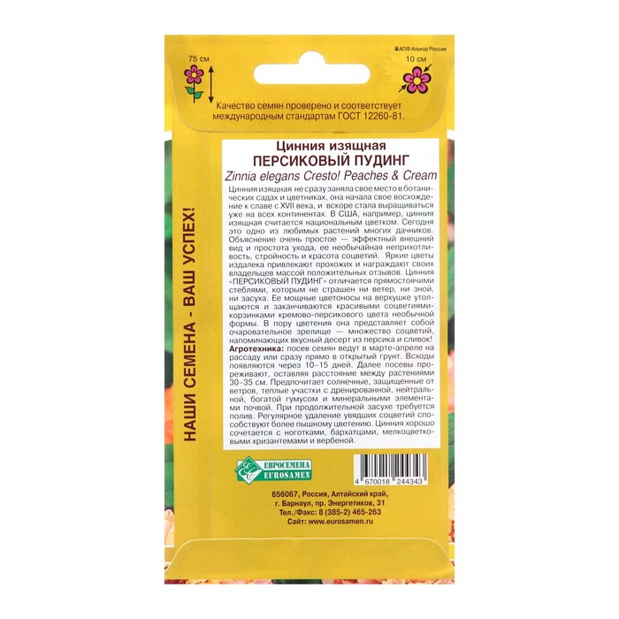 Семена Цинния изящная «Персиковый пудинг», 0.2 г, «Евросемена» — Характеристики