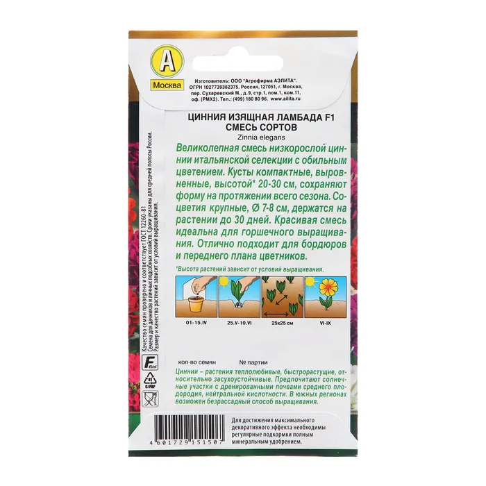 Семена Цинния Ламбада F1, смесь сортов Одн Золотая серия Ц/П 12шт — Характеристики