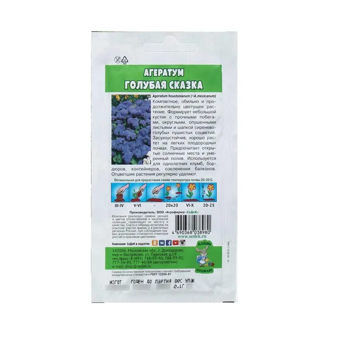 Семена Цветок Агератум "Голубая сказака "0.1 г — Характеристики