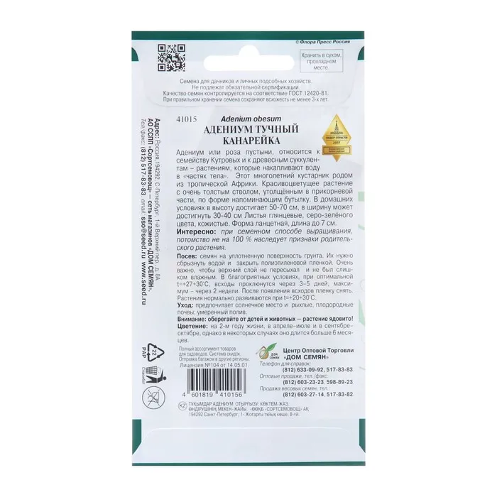 Семена цветов Адениум тучный "Канарейка", 3 шт — Характеристики
