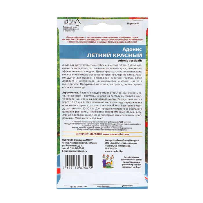 Семена Цветов Адонис "Летний красный" , 0 ,1 г — Характеристики