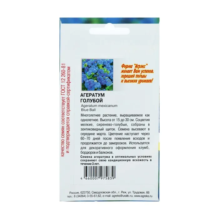 Семена цветов Агератум голубой, О, 0,1 г — Характеристики