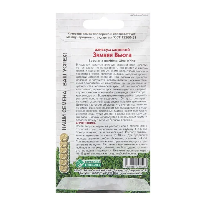 Семена цветов Алиссум морской "Зимняя Вьюга", драже, 5 шт, — Характеристики