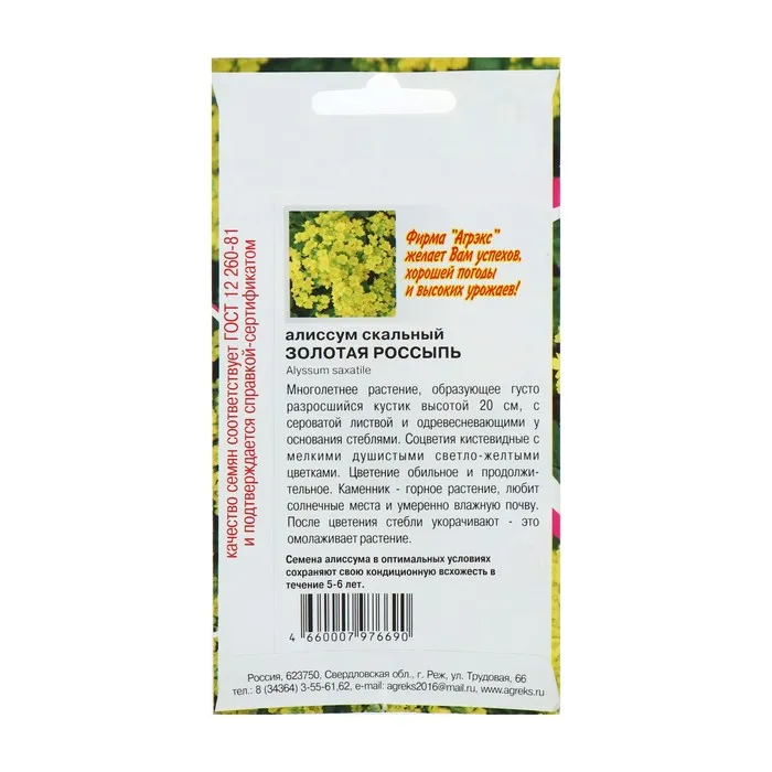 Один из самых популярных ковровых многолетников. Растение образует густо разросшийся кустик высотой 15 см с серо-зелёной листвой, стебли ветвистые, в основании деревя-нистые. Кистевидные соцветия с мелкими душистыми светло-жёлтыми цветками. Обильное цветение на второй год с апреля по июнь. После цветения стебли укорачивают - это омолаживает растение и помогает сдерживать его рост. Используют на каменистых горках, в миксбордерах и бордюрах.