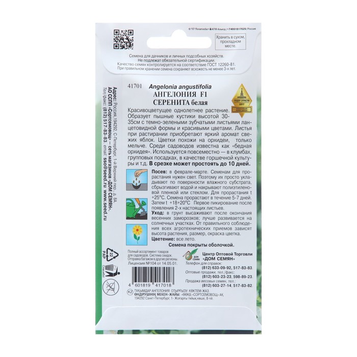Семена цветов Ангелония "Серенита F1 белая", 3 шт — Характеристики