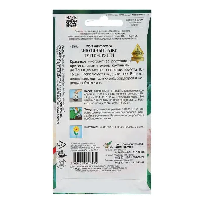 Красивое многолетнее растение с оригинальными очень крупными, до 7см в диаметре, цветками. Используют как двулетнее. Великолепно подходит для клумб, бордюров и маленьких букетиков.