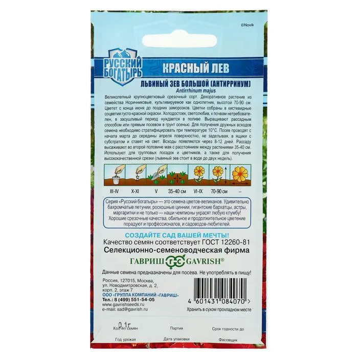 Великолепный крупноцветковый срезочный сорт. Декоративное растение из семейства Норичниковые, культивируемое как однолетник, высотой 70-90 см. Цветет с конца июня до поздних заморозков. Цветки собраны в кистевидные соцветия темно-красной окраски. Холодостоек, светолюбив, к почвам нетребователен, в засушливый период нуждается в поливе. Выращивают рассадным способом. Посев проводят с начала марта до середины апреля. Всходы появляются через 8-12 дней. Рассаду высаживают во второй половине мая с расстоянием между растениями 35-40 см. Используется для групповых посадок и цветников, а также для получения высококачественной срезки (львиный зев стоит в воде до двух недель).