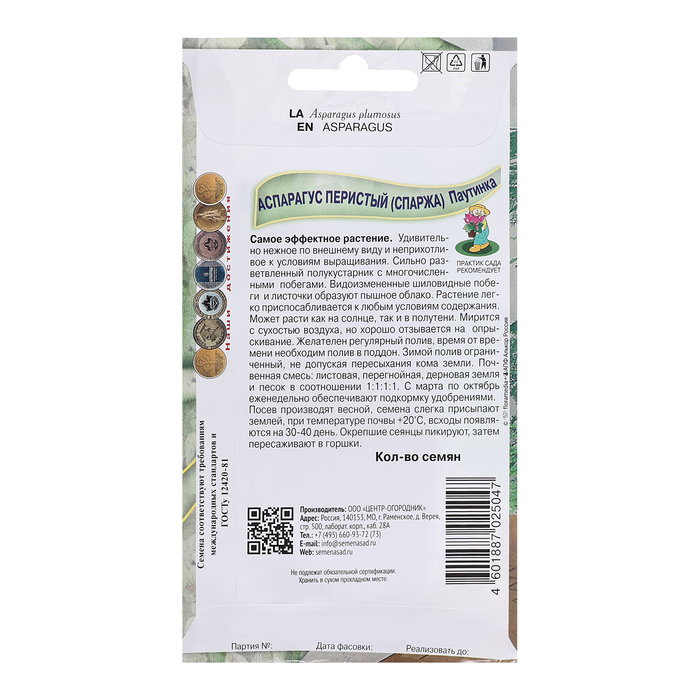 Семена цветов Аспарагус перистый «Паутинка», 5 шт., «ПОИСК» — Характеристики