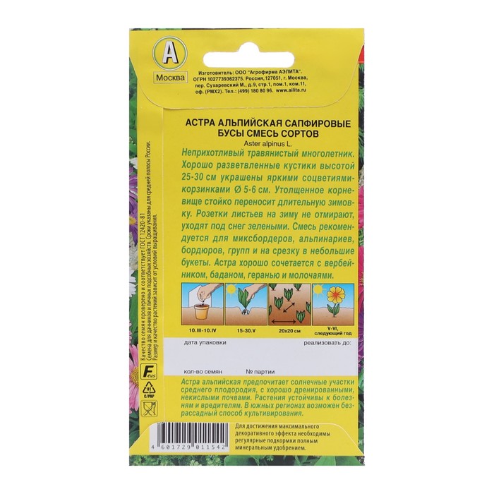 Семена цветов Астра альпийская "Сапфировые бусы", смесь окрасок, Мн, 0,1 г — Характеристики
