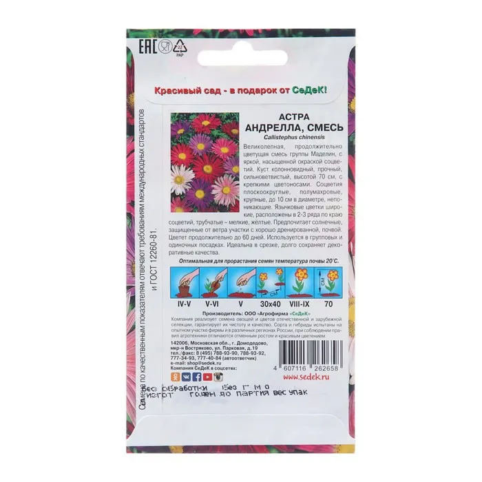 Семена цветов Астра "Андрелла", Евро, 0,2 г — Характеристики