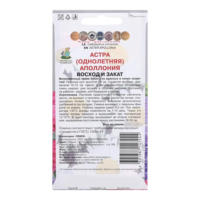 Семена цветов Астра Аполлония "Восход и закат", 0,3гр — Характеристики