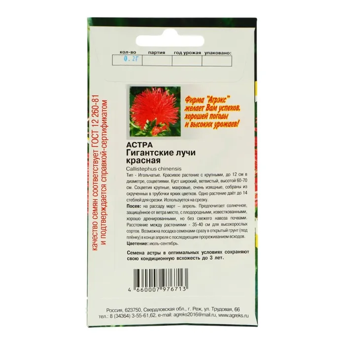 Семена астр высевают с середины февраля по апрель. Глубина заделки семян 0,5 см. При температуре +20˚C всходы появляются на 7-14 день. Через 3-4 недели посевы пикируют и выращивают при температуре 12-15˚C.