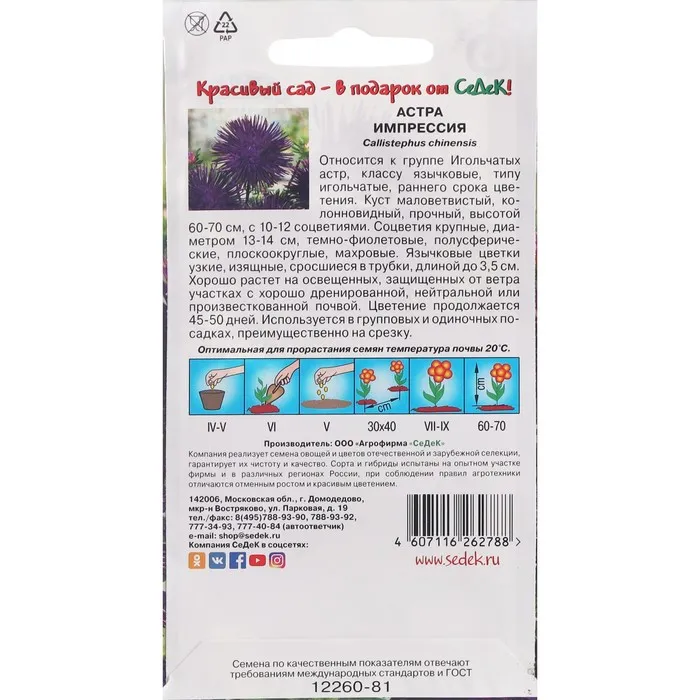 Семена Цветов Астра "Импрессия "0.2 г — Характеристики