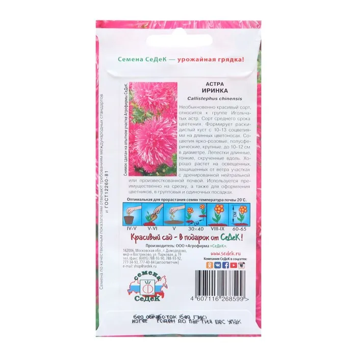 Семена цветов Астра "Иринка", Евро, 0,2 г — Характеристики