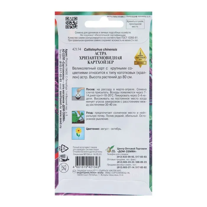 Семена цветов Астра хризантемовидная "Картхойзер", 95 шт — Характеристики