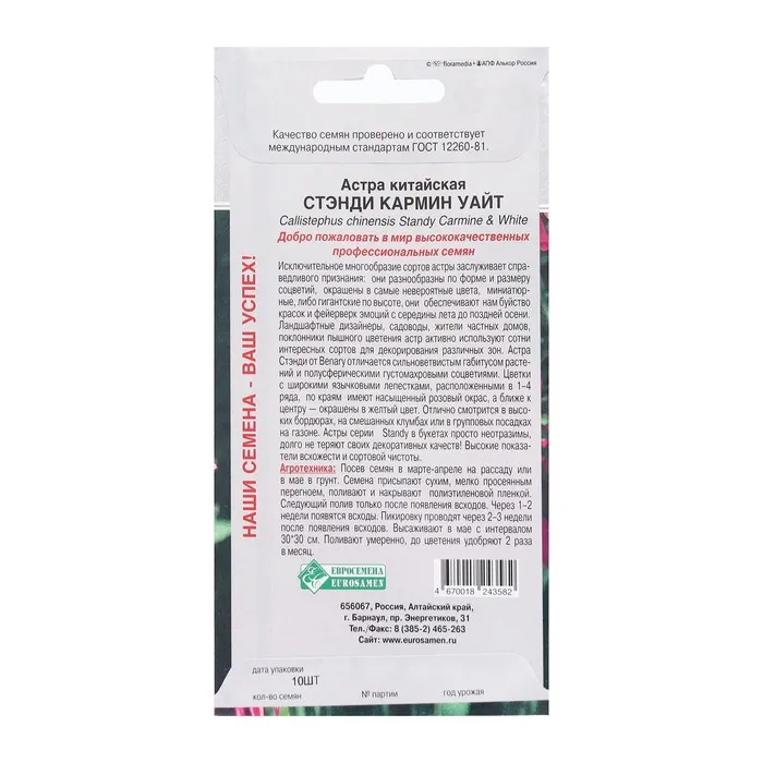 Цветки с широкими язычковыми лепестками, расположенными в 1-4 ряда, по краям имеют насыщенный розовый окрас, а ближе к центру - окрашены в желтый цвет. Отлично смотрится в высоких бордюрах, на смешанных клумбах или в групповых посадках на газоне. Астры серии Standy в букетах просто неотразимы, долго не теряют своих декоративных качеств. Высокие показатели всхожести и сортовой чистоты.