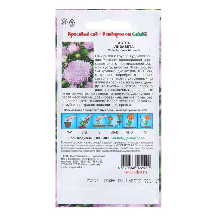 Семена цветов Астра "Лизавета", Евро, 0,2 г — Характеристики