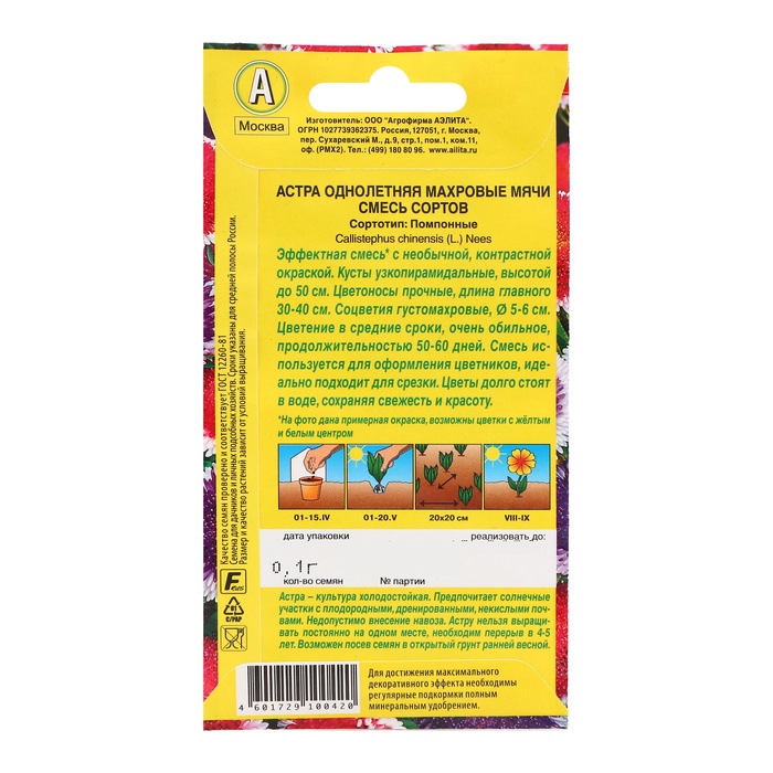 Семена цветов Астра «Махровые мячи», смесь окрасок, набор 5 шт., «Аэлита» — Характеристики