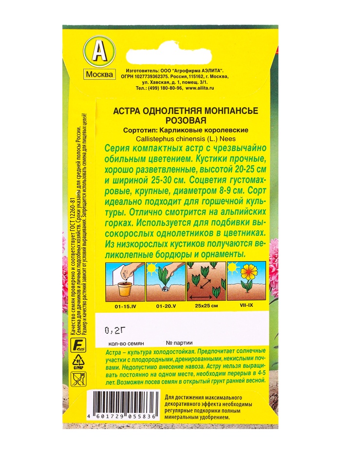 Семена цветов Астра Монпансье розовая , Ц/П,0,2 г — Характеристики