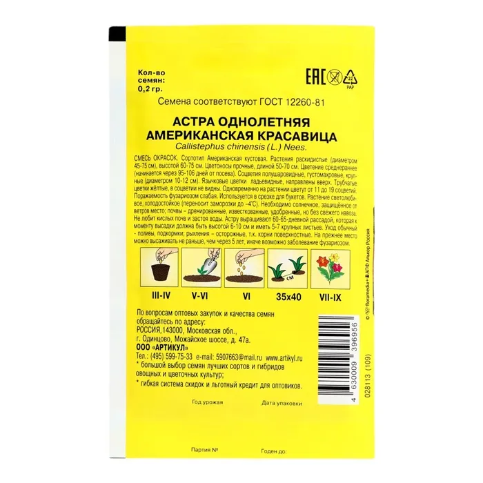 Для выращивания подходят хорошо освещенные участки с плодородной суглинистой или супесчаной почвой. Сырые и затопляемые весной и осенью участки для них непригодны. Астры обладают высокой холодостойкостью — хорошо переносят заморозки до -3 -4 °C. Выращивают, чаще всего, рассадным способом. Семена высевают в марте-апреле, пикируют с развитием первой пары настоящих листочков по схеме 5x5 см, в открытый грунт рассаду высаживают с середины мая до начала июня с расстоянием между растениями 25 см. Используется для получения срезки и оформления участка.