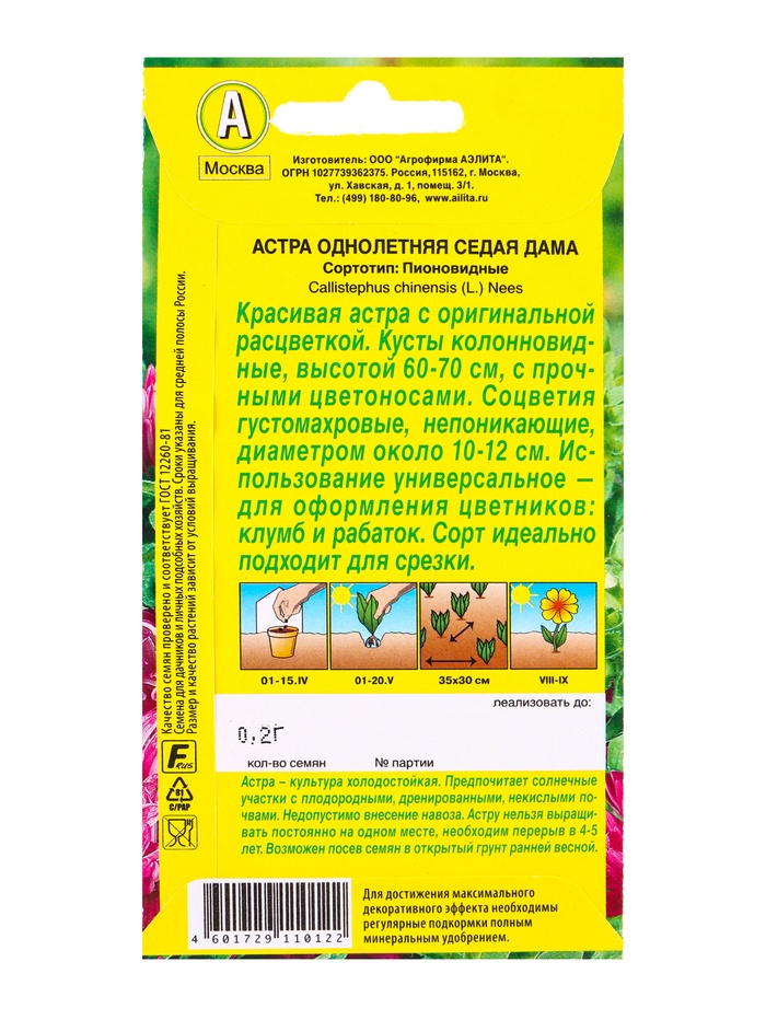 Семена цветов Астра Седая дама , Ц/П,0,2 г — Характеристики