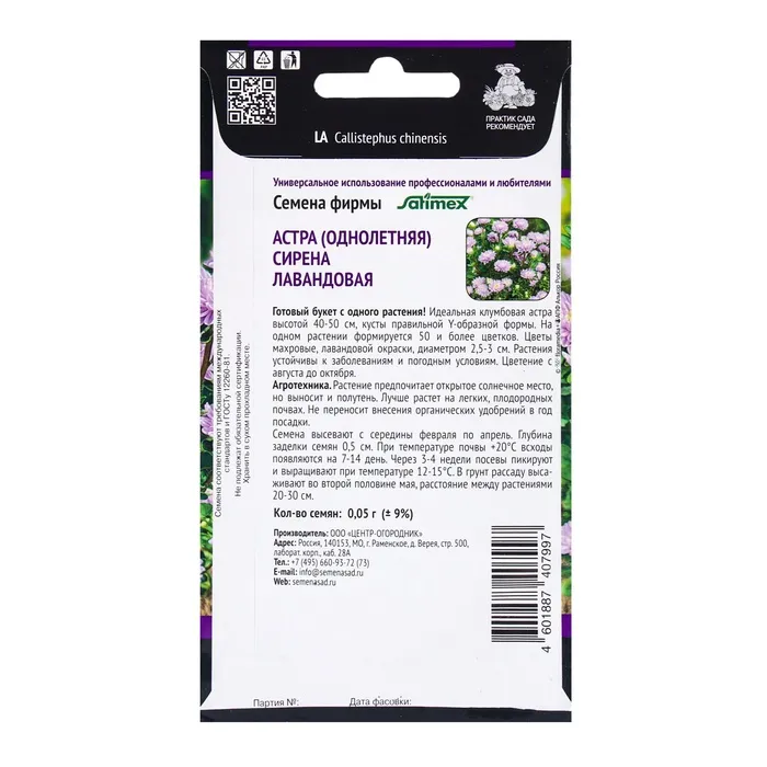 Семена цветов Астра Сирена Лавандовая, 0,05гр — Характеристики