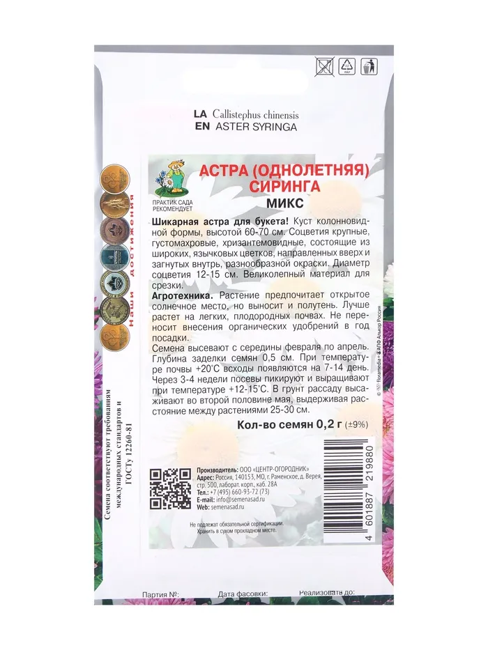 Семена цветов Астра Сиринга Микс, 0,2гр — Характеристики