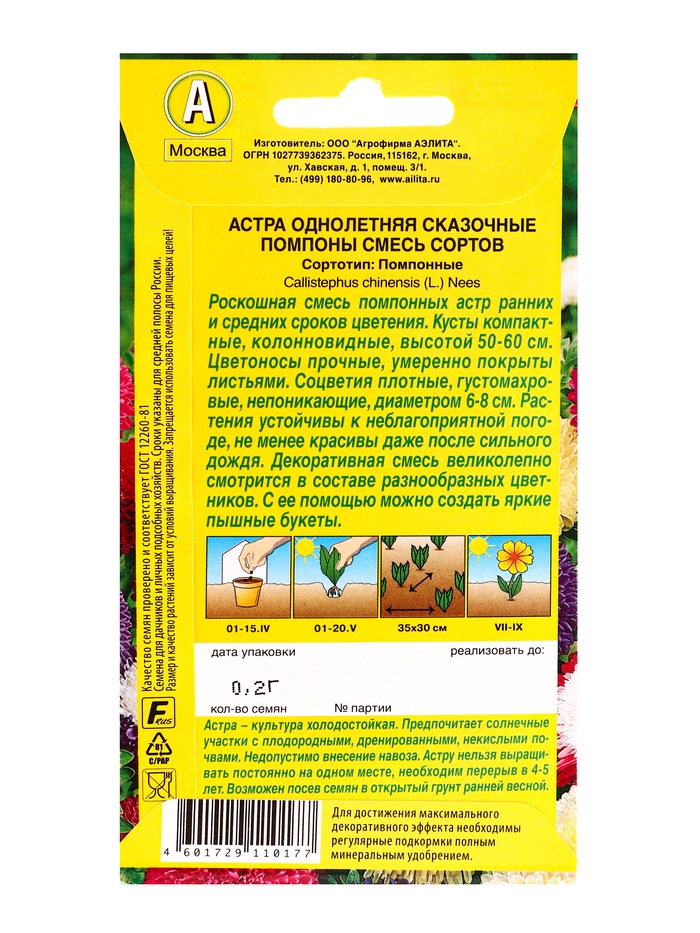 Семена цветов Астра Сказочные помпоны, смесь сортов , Ц/П,0,2 г — Характеристики
