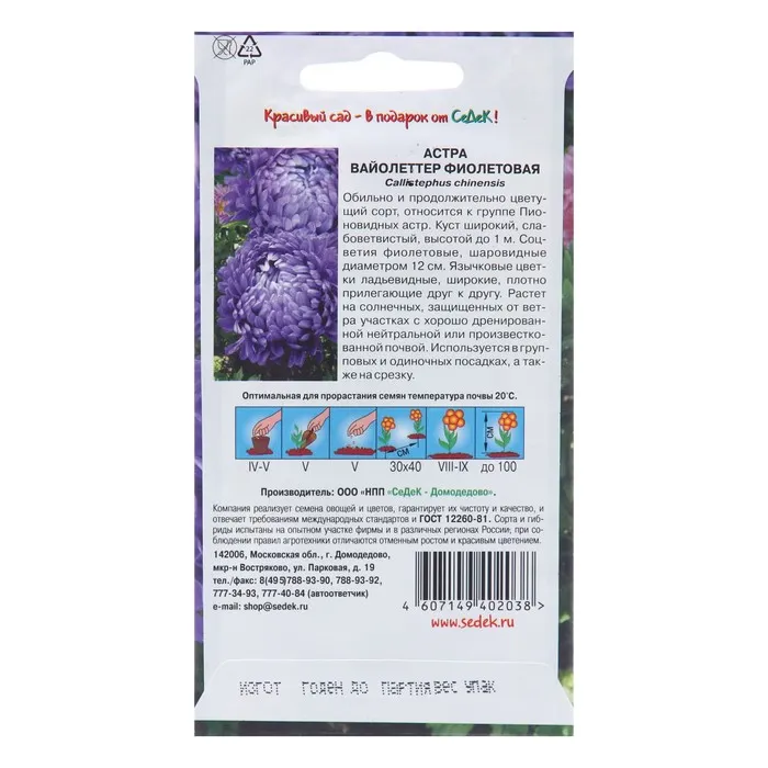 Семена цветов Астра "Вайолеттер фиолетовая", Евро, 0,2 г — Характеристики