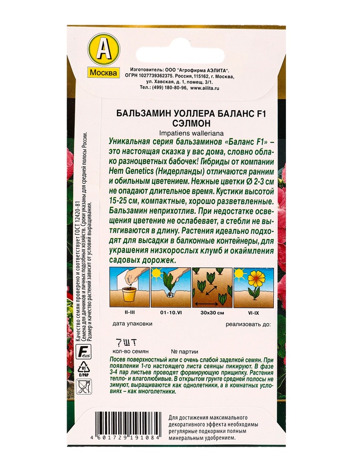 Семена цветов Бальзамин Баланс F1 сэлмон С. Hem Genetics Золотая серия, Ц/П,7 шт. — Характеристики