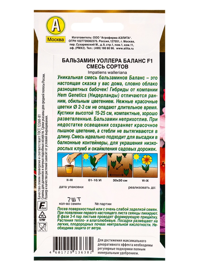 Семена цветов Бальзамин Баланс F1, смесь сортов С. Hem Genetics Золотая серия, Ц/П,7 шт. — Характеристики