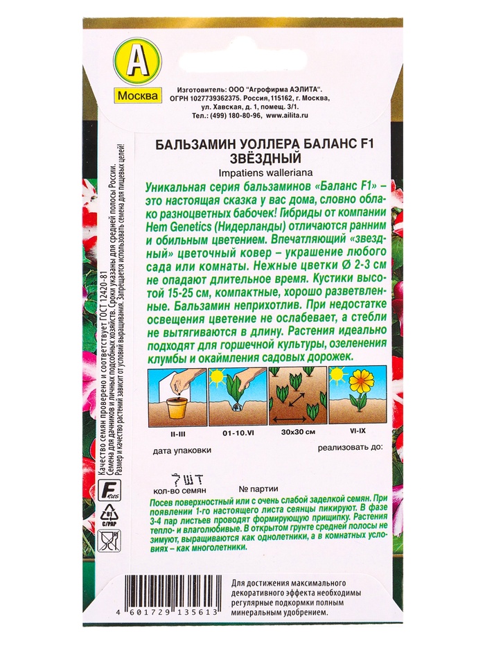 Семена цветов Бальзамин Баланс F1 звездный С. Hem Genetics Золотая серия, Ц/П,7 шт. — Характеристики