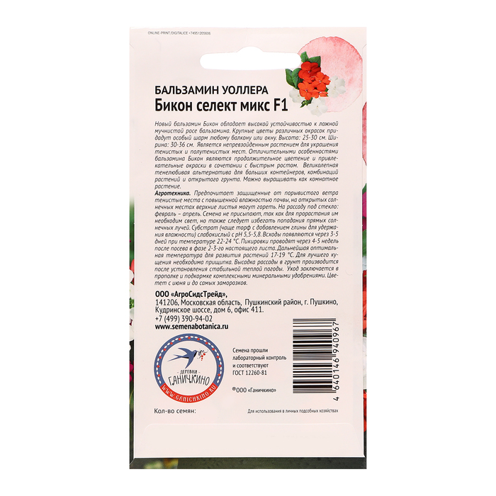 Семена цветов Бальзамин Уоллера «Бикон Селект Микс F1», 5 шт., «Агросидстрейд» — Характеристики