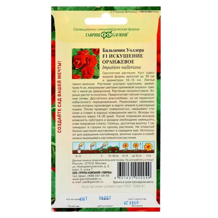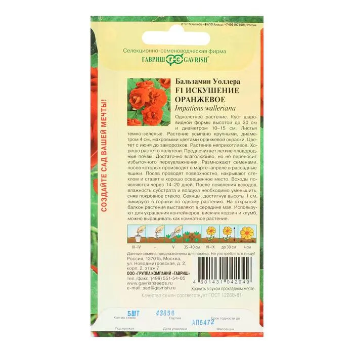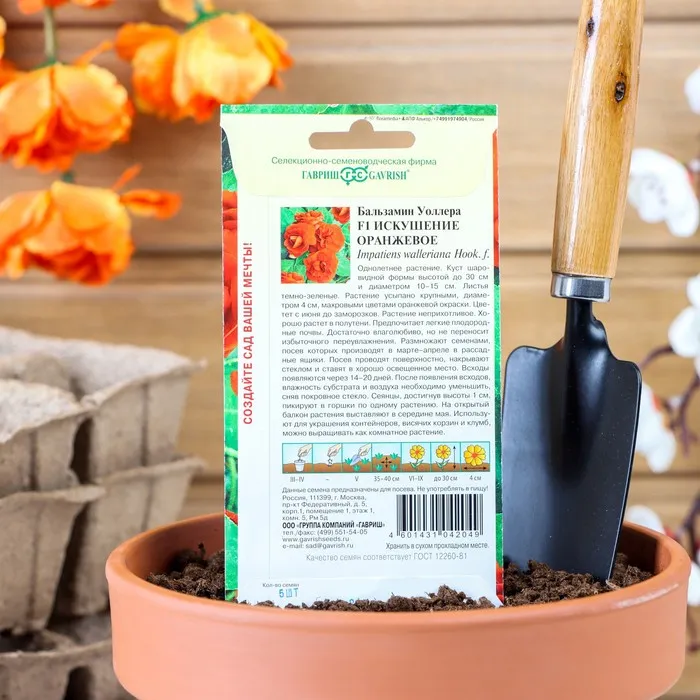 Семена цветов Бальзамин "Уоллера Искушение оранжевое" F1, О, ц/п, 4 шт. — Характеристики