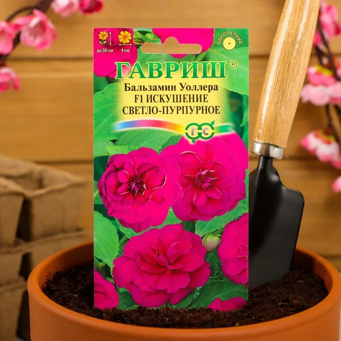 Бальзамин Уоллера — это однолетнее растение, которое усыпано крупными махровыми цветами светло-пурпурной окраски. Он неприхотливый, влаголюбивый, теневыносливый.