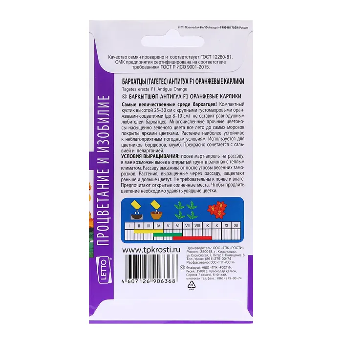 Семена цветов Бархатцы «Антигуа оранжевые карлики F1», 7 шт. — Характеристики